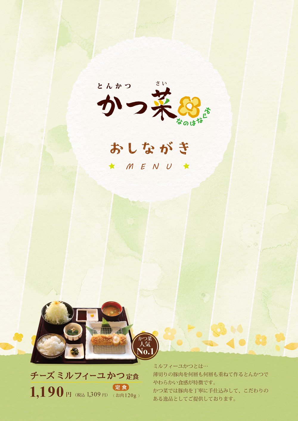 かつ菜は豊かな大地、豊かな海に囲まれた千葉ならではの食材をお楽しみ頂けるとんかつ屋です。